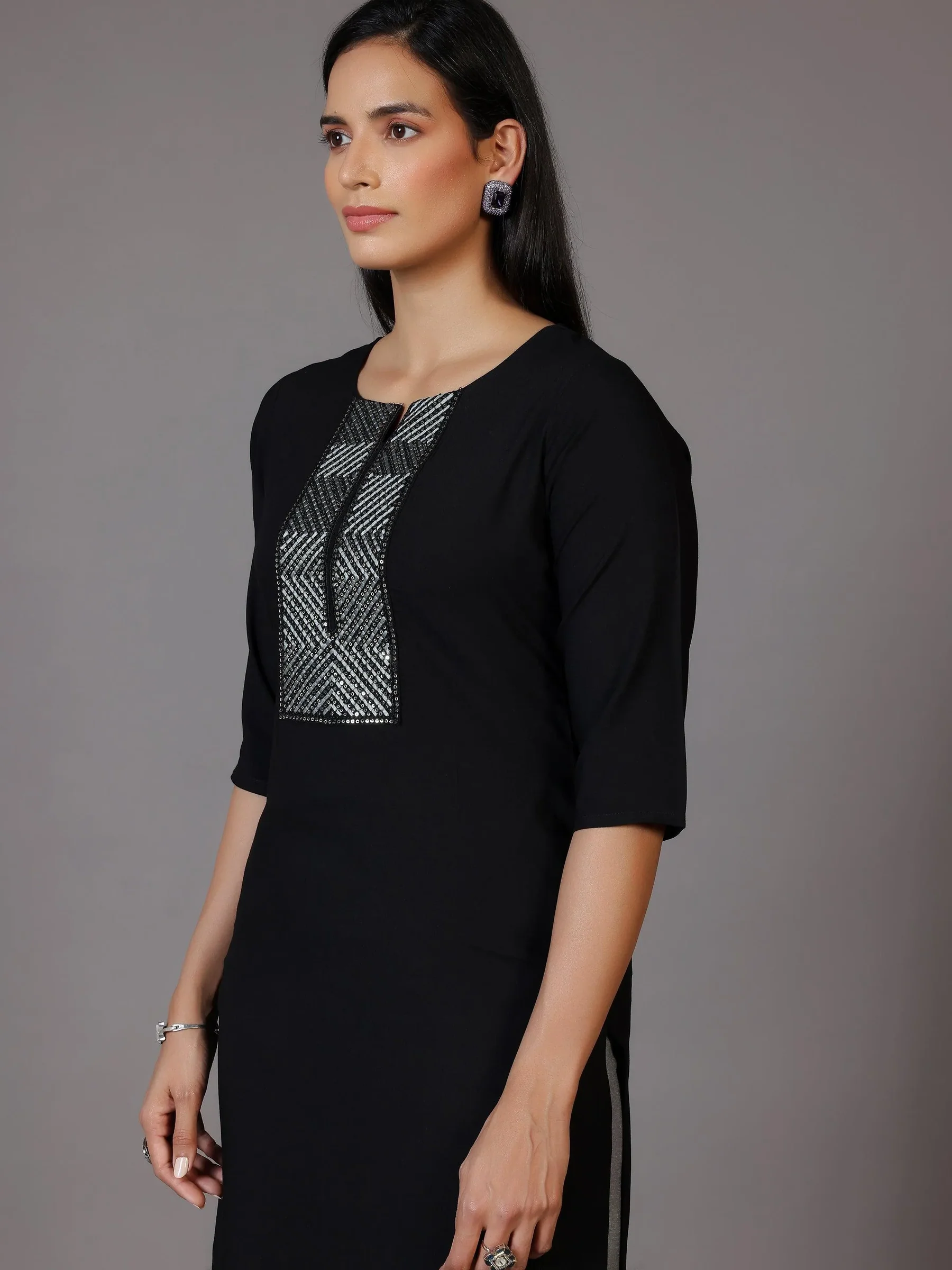 Black Embellished Rayon Straight Kurta