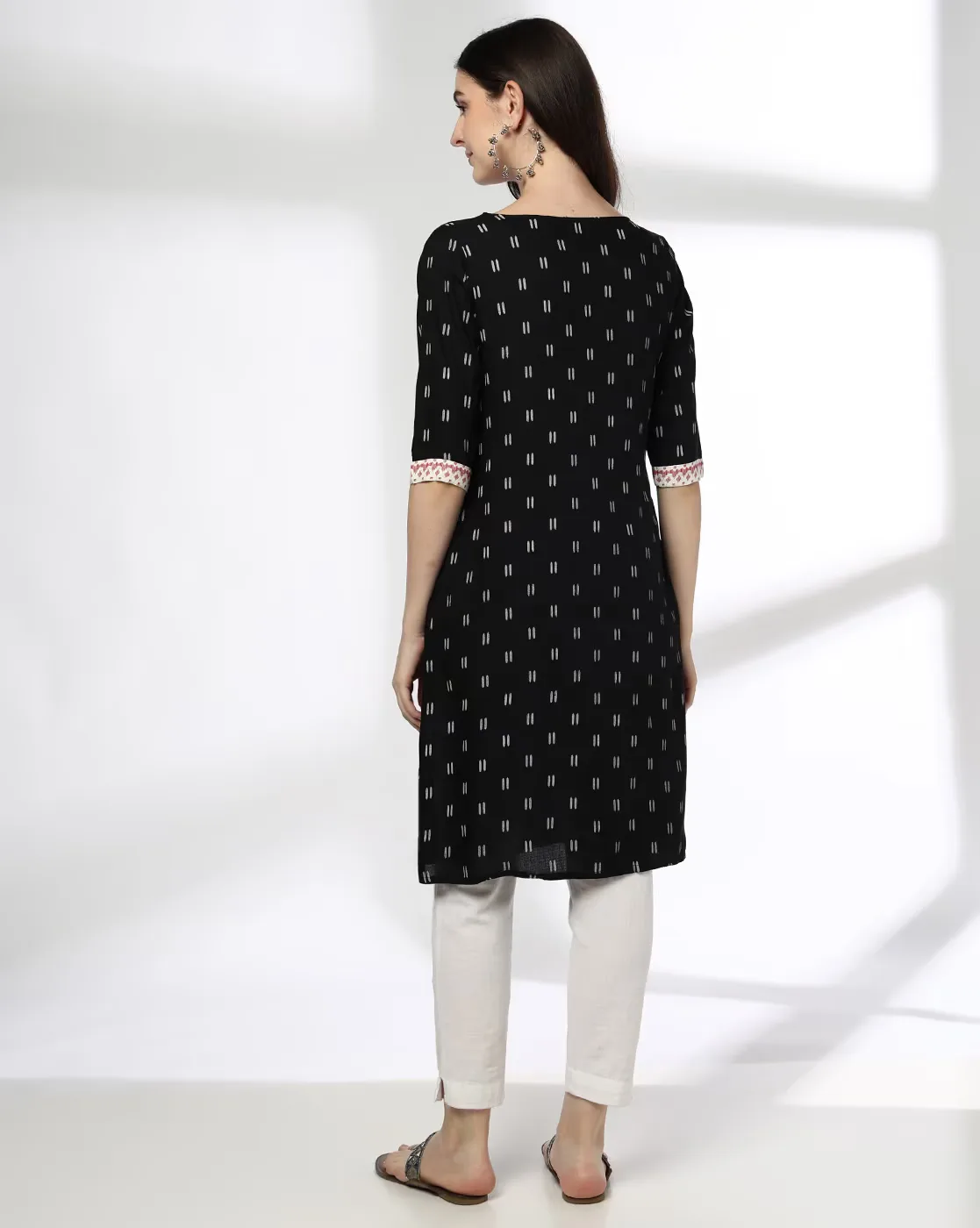 Women Zig-Zag Cross Stitch Embroidered Straight Kurta
