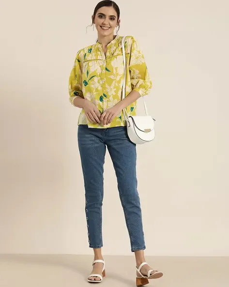 Additional Information 3: Womens printed top; top; tops; partywear top; festival top; long top; yellow top; tops for womens; girls top